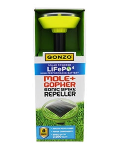 GONZO LiFePO4 Solar Sonic Spike Mole & Goph Repel Disply 36/D